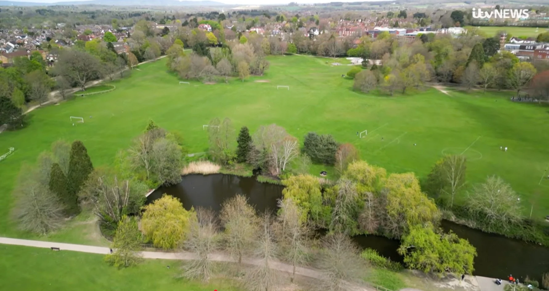 Horsham Park - Aerial view from ITV News item.