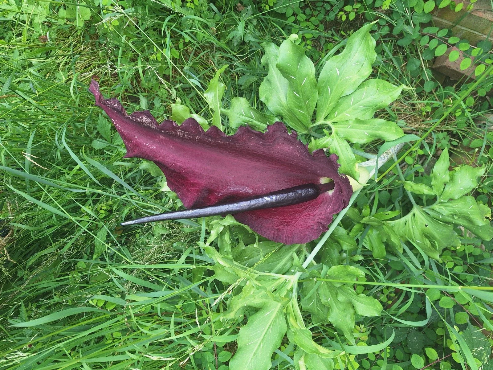 At forty centimetres long the bloom of the Dragon Lilly is very striking and smells of rotting flesh to attract flies and beetles to pollinate it. Its normal range is the Balkans, so how did this one get to Horsham? It is not the kind of plant that anyone would be likely to want in their garden, and we have never seen one before, so the only explanation we can come up with is that a seed was brought in by a bird.